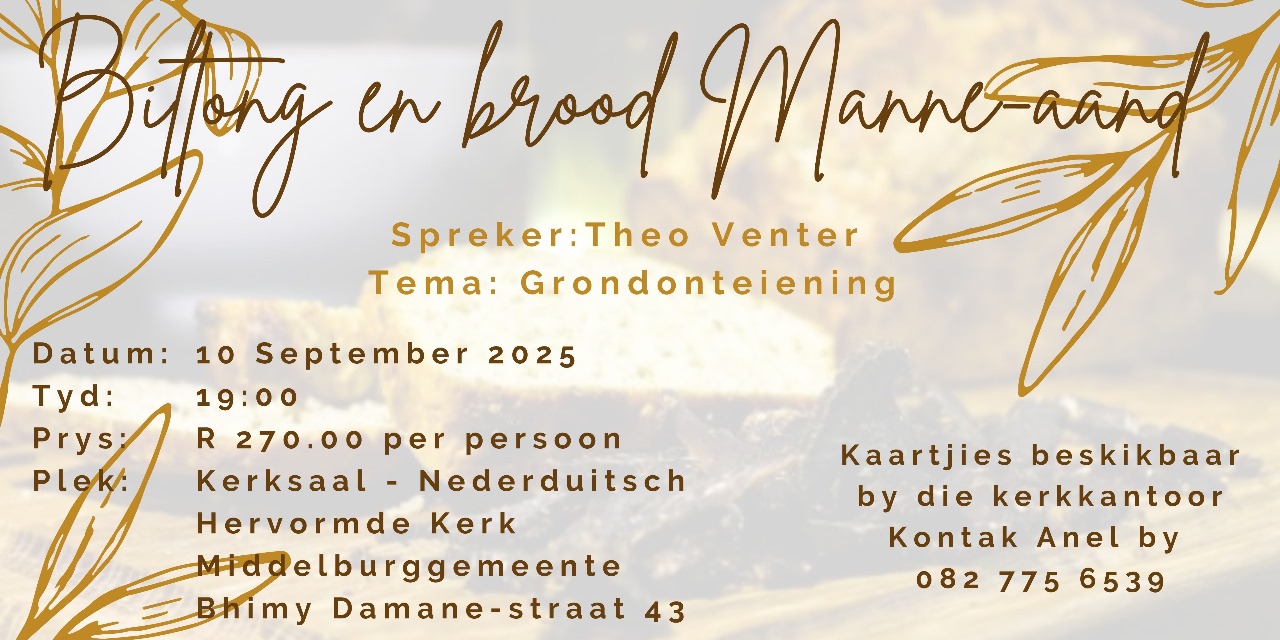 Bring jou vriende en kom kuier gerus saam met ons by ons Biltong en brood Manne-aand.